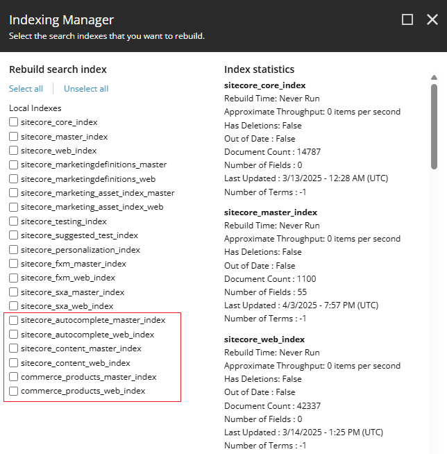*A more accurate approach is to review the configuration files in App_Config/Include to identify which indexes are truly customized for your project.